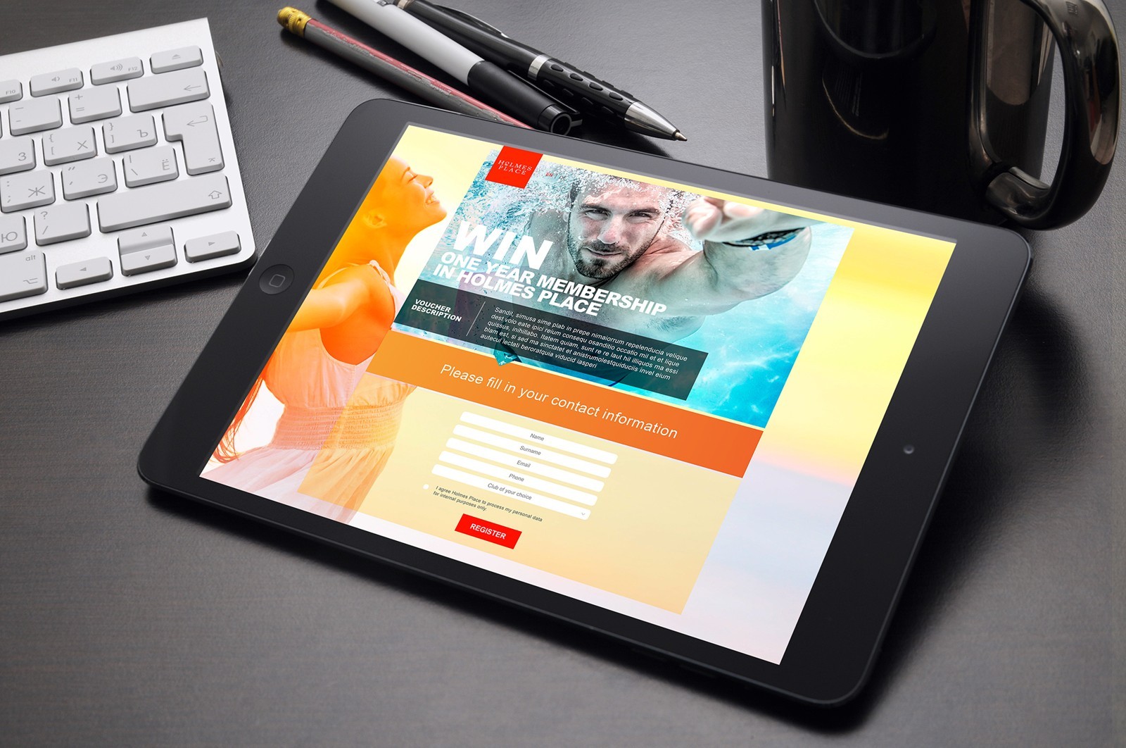 another one of many European projects for Holmes Place is a campaign and application supporting sale during summer season when it markedly decreases. The participants of the campaign gained after registration special offers for sets of summer products or even got them as presents. The application clearly served as a generator of a lead for further sales and thus increased summer sale signally. The campaign very successfully took place in several countries e.g. Germany, Austria, Switzerland, Poland.