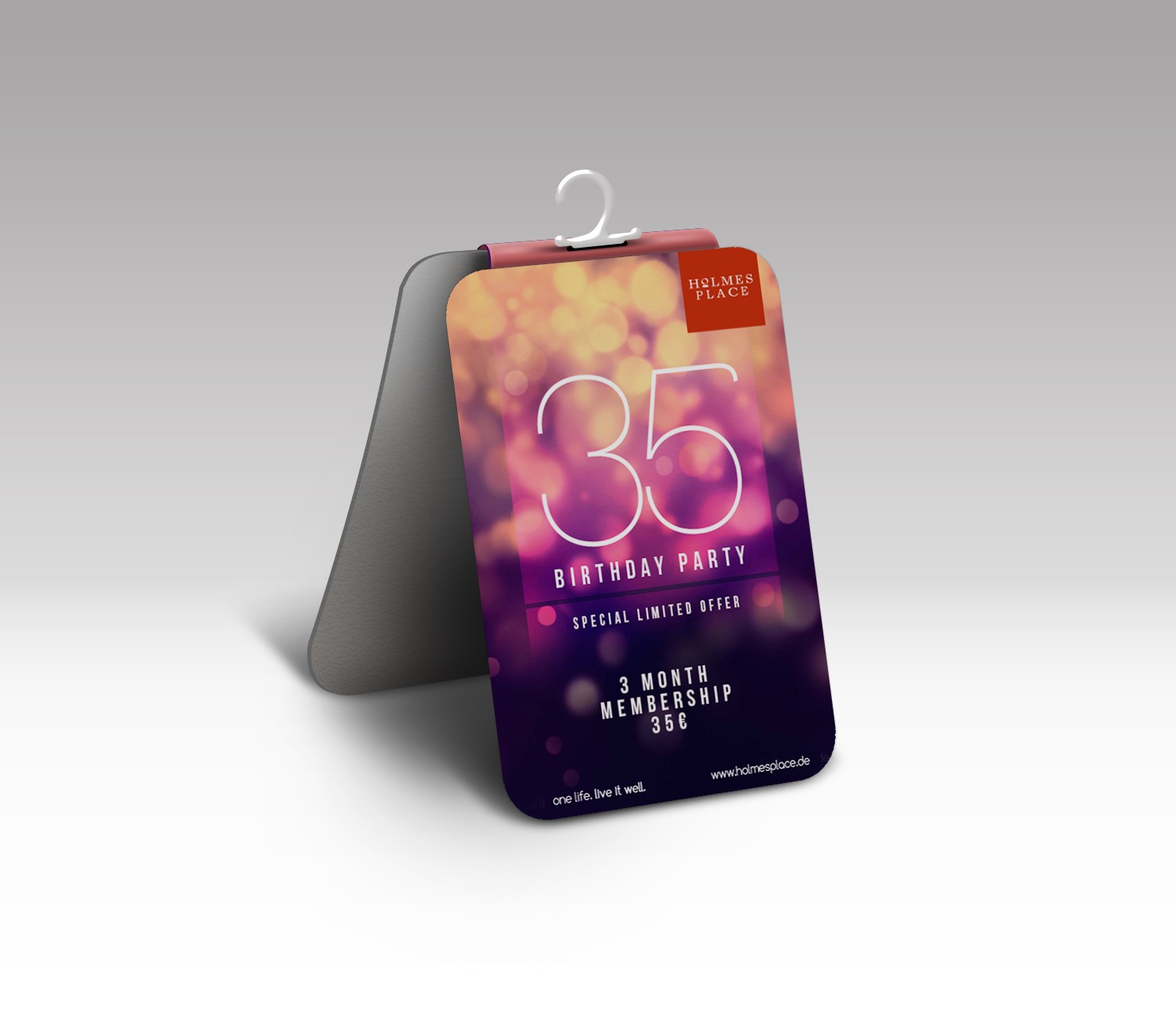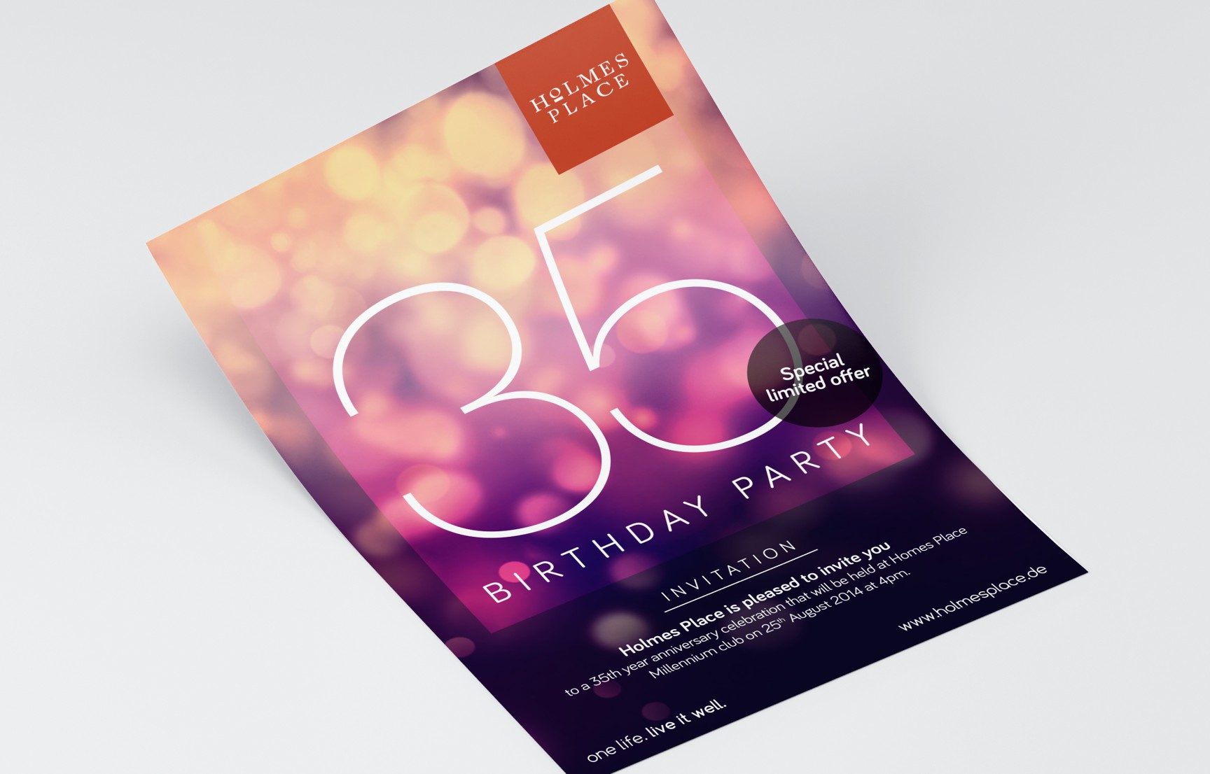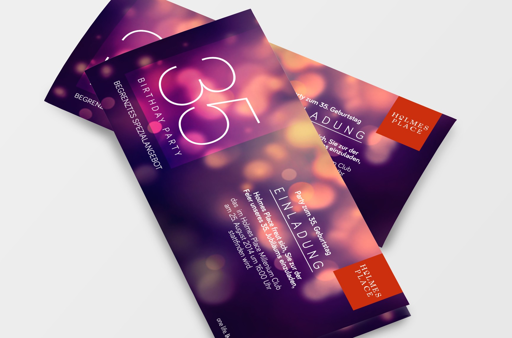 For our client – company Holmes Place and their celebration of 35 years long existence on the market we prepared complete graphic image. It was a BTL campaign which was supposed to softly remind of the tradition and stability of the HP Company and thus to strengthen the loyalty of clients. The campaign took place in several European countries.