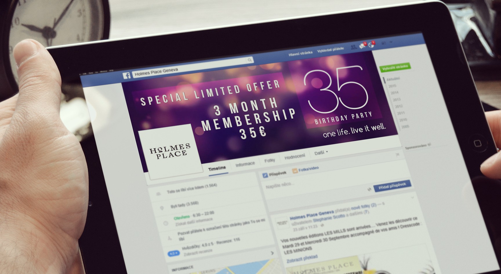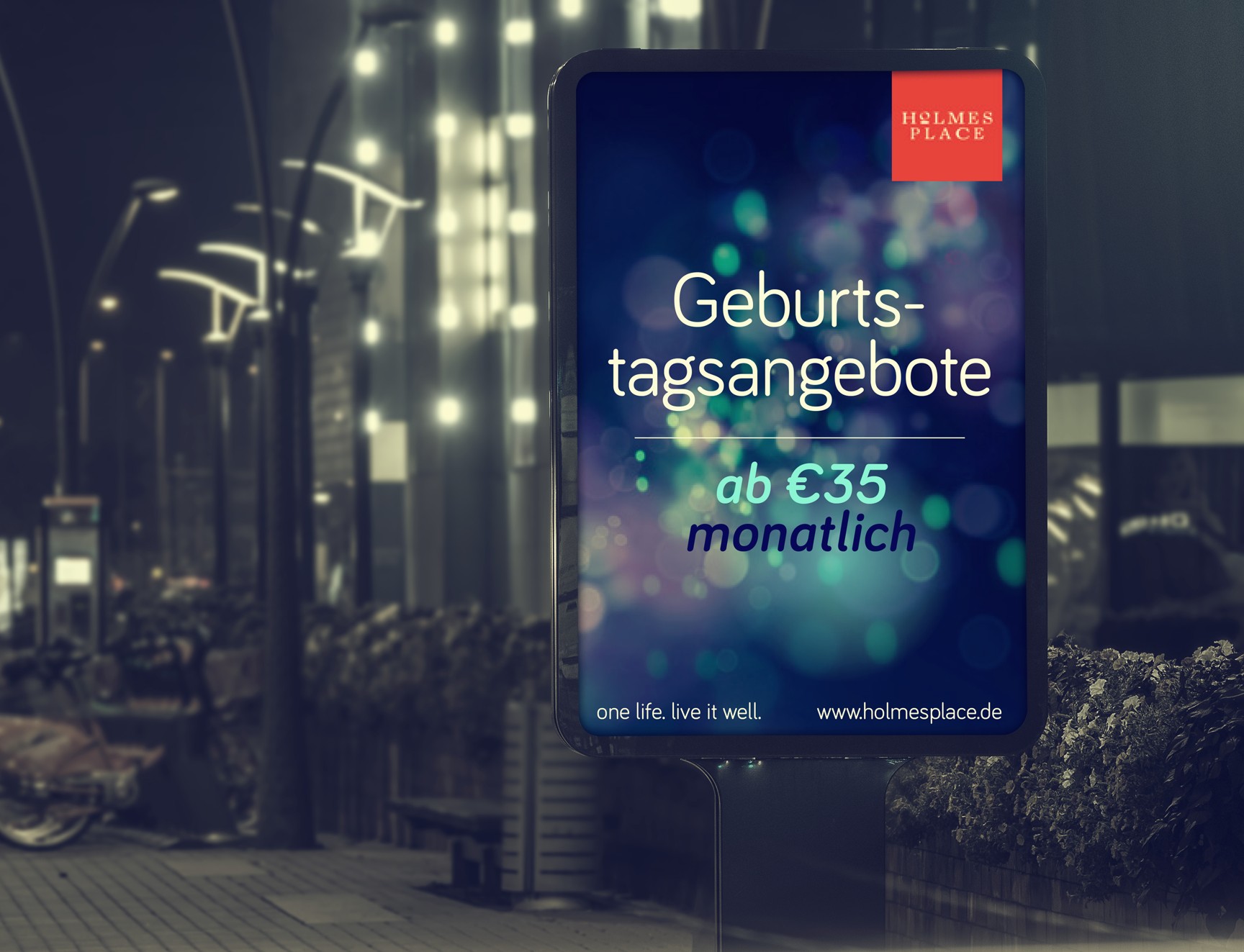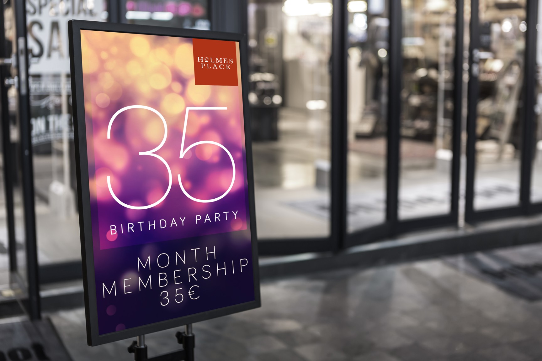 For our client – company Holmes Place and their celebration of 35 years long existence on the market we prepared complete graphic image. It was a BTL campaign which was supposed to softly remind of the tradition and stability of the HP Company and thus to strengthen the loyalty of clients. The campaign took place in several European countries.