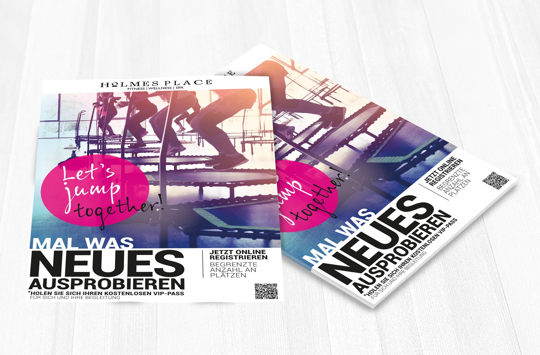 One of another interesting tasks of the international company Holmes Place was a campaign for a special product called „Jumping“ – a unique, new and progressive fitness method. We prepared for the client complete materials for successful presentation of the project which soon after became one many other successful programmes of HP and took place again throughout Europe.
