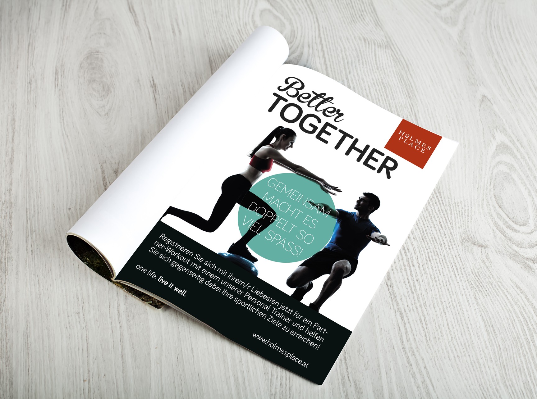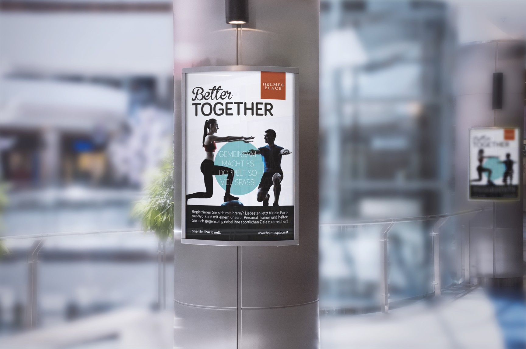 - other great challenge from Holmes Place was to prepare communication of Personal training in fitness clubs. Considering the fact it represents very important up-sell product, the company emphasised this communication a lot. We provided complete BTL and ATL materials for the existing members as well as a campaign for new clients with special offer for purchase of membership + PT. This graphically very strong and catchy campaign took place in all European countries where HP operates.
